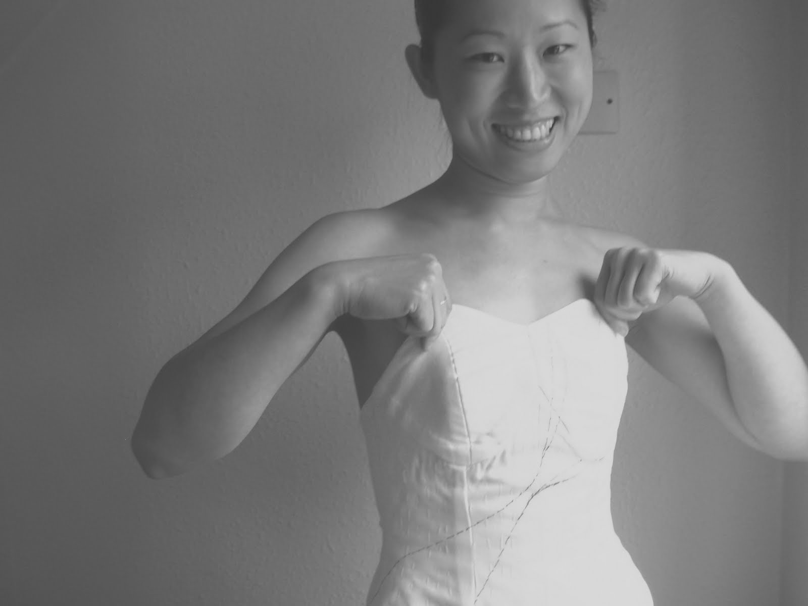 Could not wait until tomorrow… So altered the toile with new centre back dart. Did another fitting and it is now PERFECT! Bride really pleased and the couture dress can finally be made.