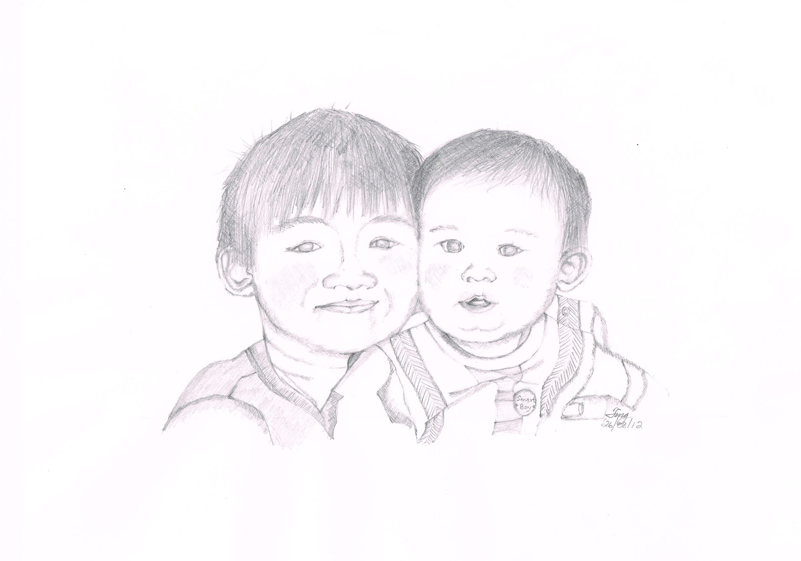 These are the sons of a friend of mine and they had a shared birthday party yesterday. I thought I’d have a go at drawing them for the occasion. I don’t think it’s a bad effort but I do think I need tons of improvement still! I think I caught the likeness of my godson. This was when he was 1 year and several months old. When I saw him yesterday he was already walking and running and babbling! Amazing how quickly he has grown! His older brother looks very proud of his younger brother. I don’t think I caught his likeness enough though. Maybe try again in the future… I haven’t drawn anything ‘properly’ for a long time. Having done this yesterday made me want to go back to drawing as a regular activity as I think I am getting a little bit rusty.