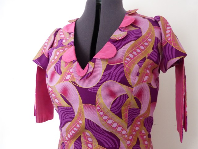 I have not posted for awhile because of how busy things have been lately, but I have managed to get a holiday as well as finish this lovely dress for someone special. I finished this last 22nd July and she wore it a wedding on the 29th. The photo above shows the top with a matching fish-tail silhouette skirt. The fabric is cotton in African print. The neck detail is made of these scallop shapes in alternating colour. The sleeve has ‘trapezoidal’ insets at the back (in two differing sizes for some dimensionality), that creates a bit of drama when the arm moves. This particular lady loves dancing, so this was an added touch to create a ‘moment’ for the dress. I haven’t designed and made a dress for awhile, so the project was exhilarating. Frock-making can be quite therapeutic for those of us who find a weird kind of solace in this kind of activity. I can’t explain it eloquently, but it does have that effect on me.