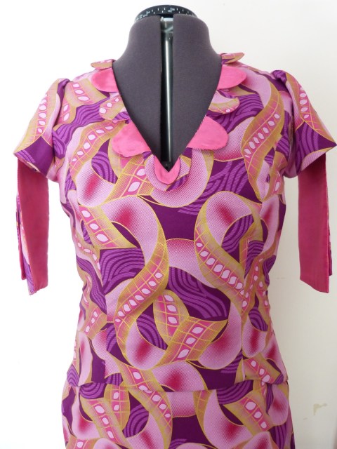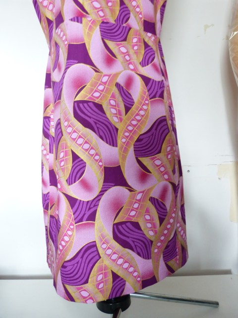 The top in full, with the hem ending just above the hip line. I had to pay close attention to the print and laid my pattern pieces with this in mind. Prints can be tricky. The frock can look tacky if the ‘story’ of the print isn’t preserved on the final cut. It all has to flow somehow and have some symmetry or story about it.