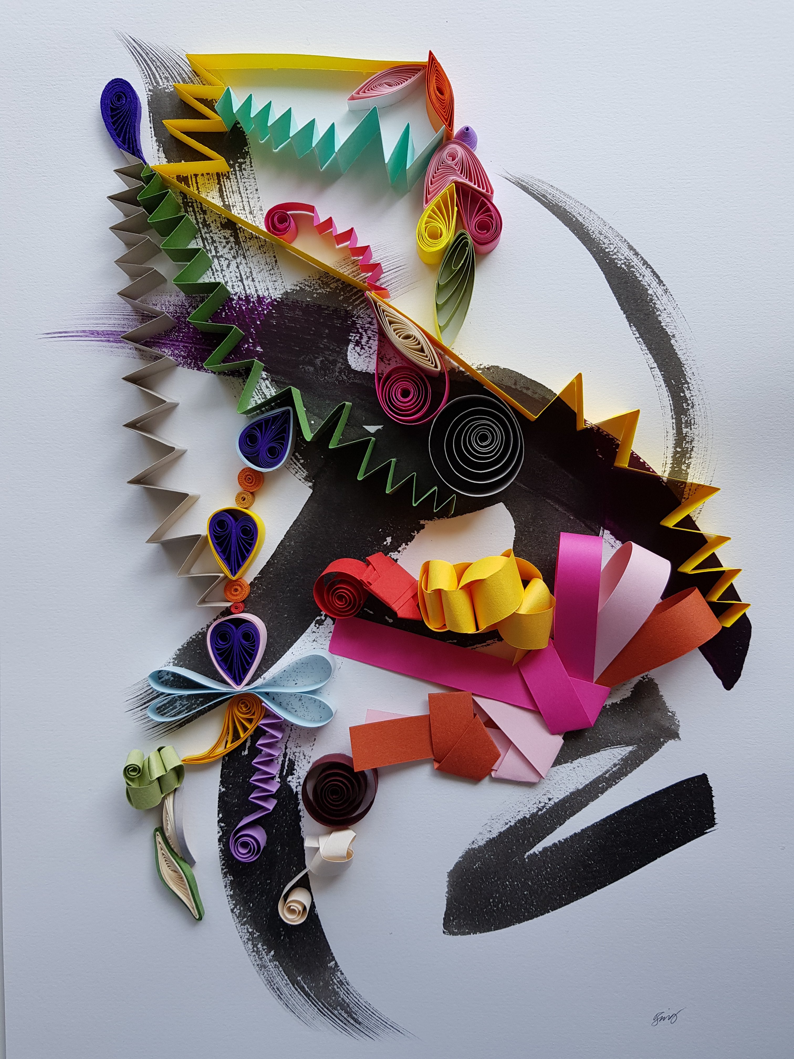 Getting some brushwork to work with some strong tropical colours. I just can’t get enough of these saturated colours. This was an experiment at suggesting some movement. It would appear that yellow is quite an effective mood enhancing colour. Can’t beat it at the moment.