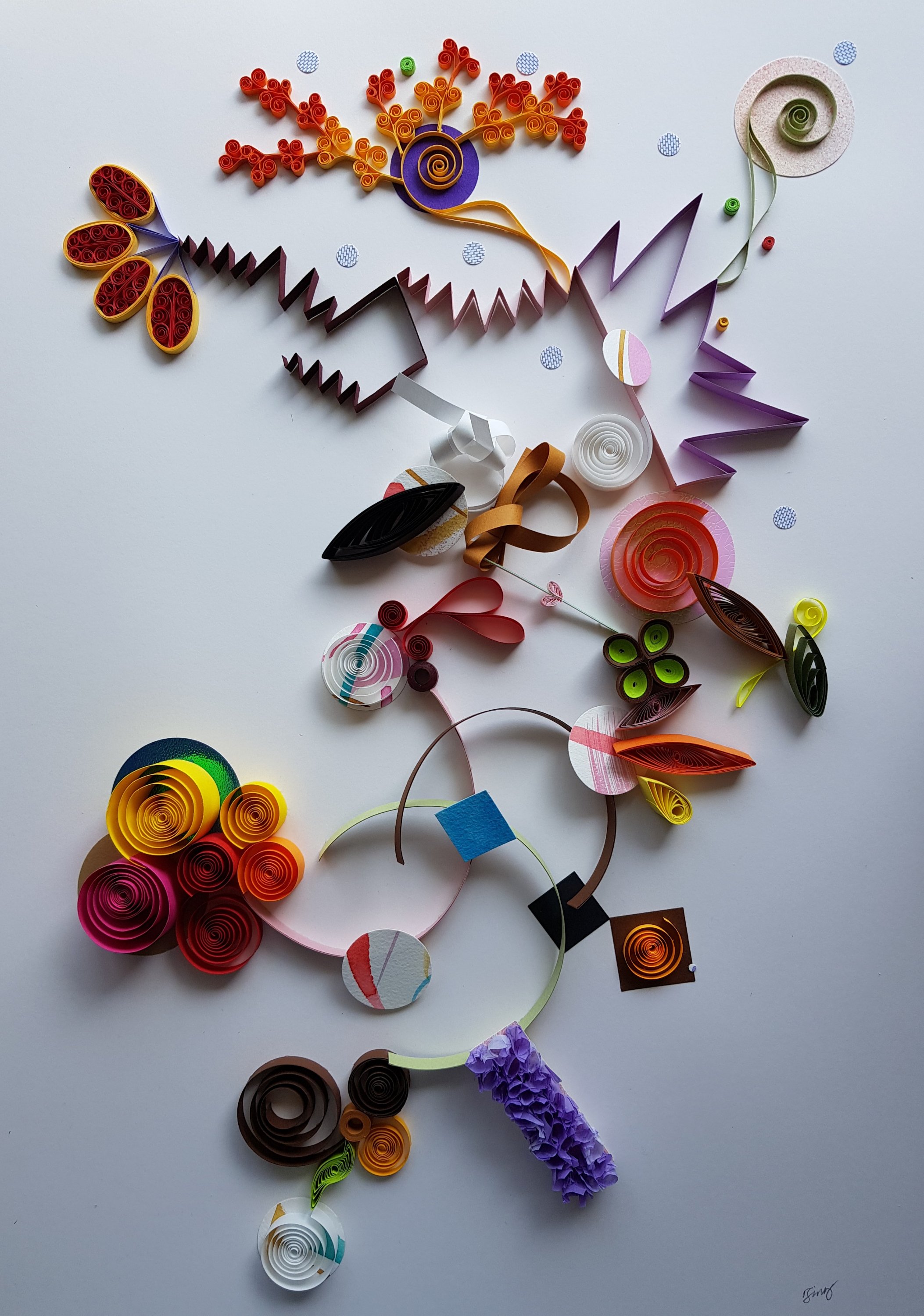 This is my homage to early evening birdsong heard from my back garden. I thought about how best to suggest this beautiful chorus that lasted for hours. I came up with this. There is definitely something to be said about having all your papers just laid out and using what is in front of you. Totally unplanned. Just instinctive, intuitive. Happy with the results. But would like to develop further.