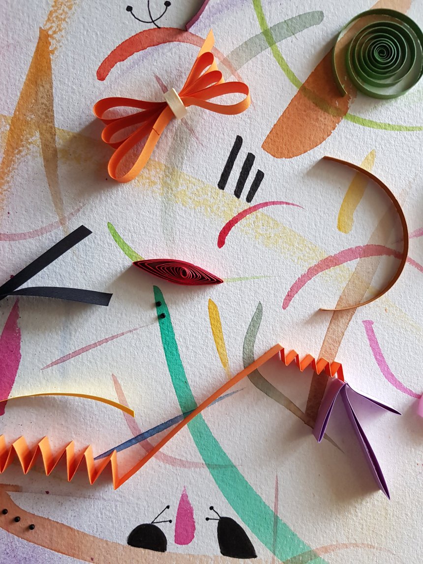Another abstract moment headed to Warwickshire Open Studios this year. I decided to inject some ‘cuties’ in this one. These inked bug-like things are emerging in my subconscious, as I listen to nature-related topics on the radio while I’m working.