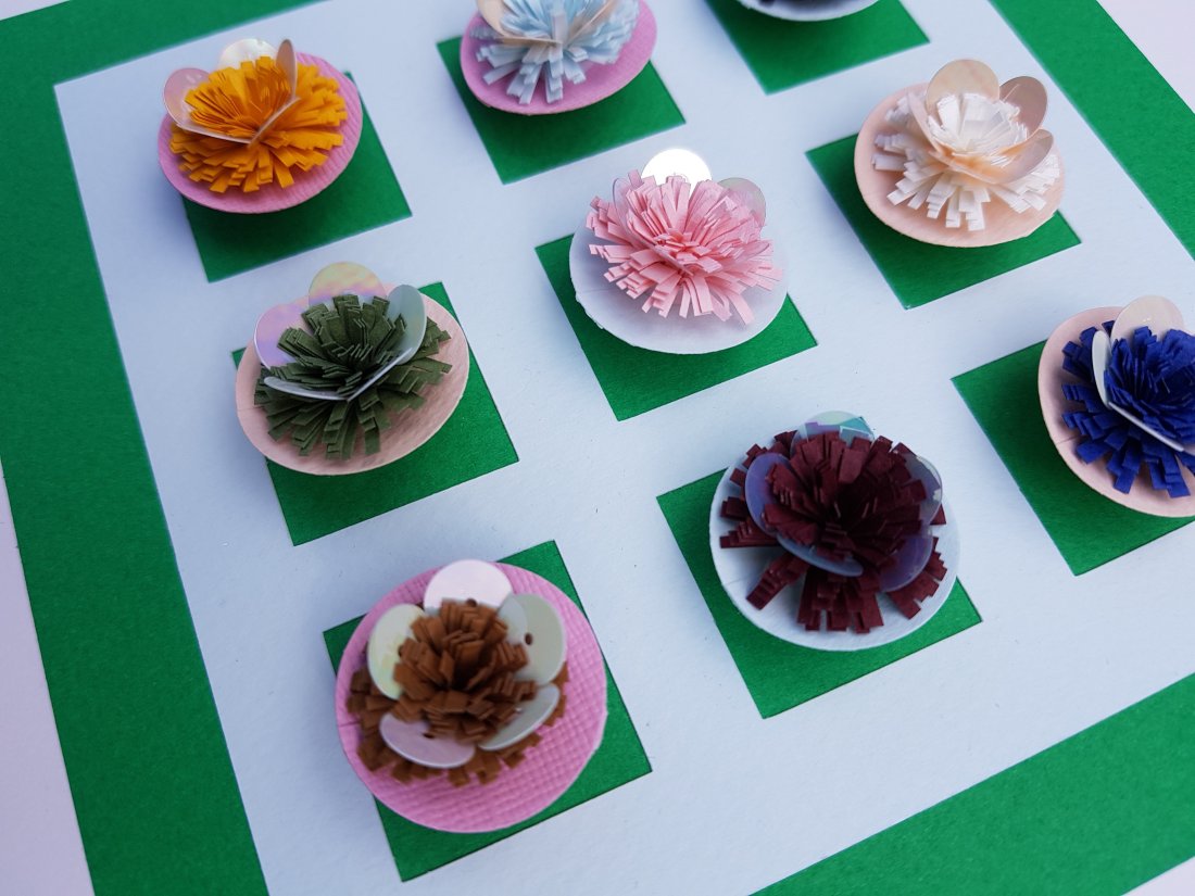 These last two works are small pieces, measuring 20 x 20 cm. This grid arrangement is becoming a tradition. I did a bigger version last winter, so I thought I’d make 2 small ones that are variations on a theme. My mum loves these!
