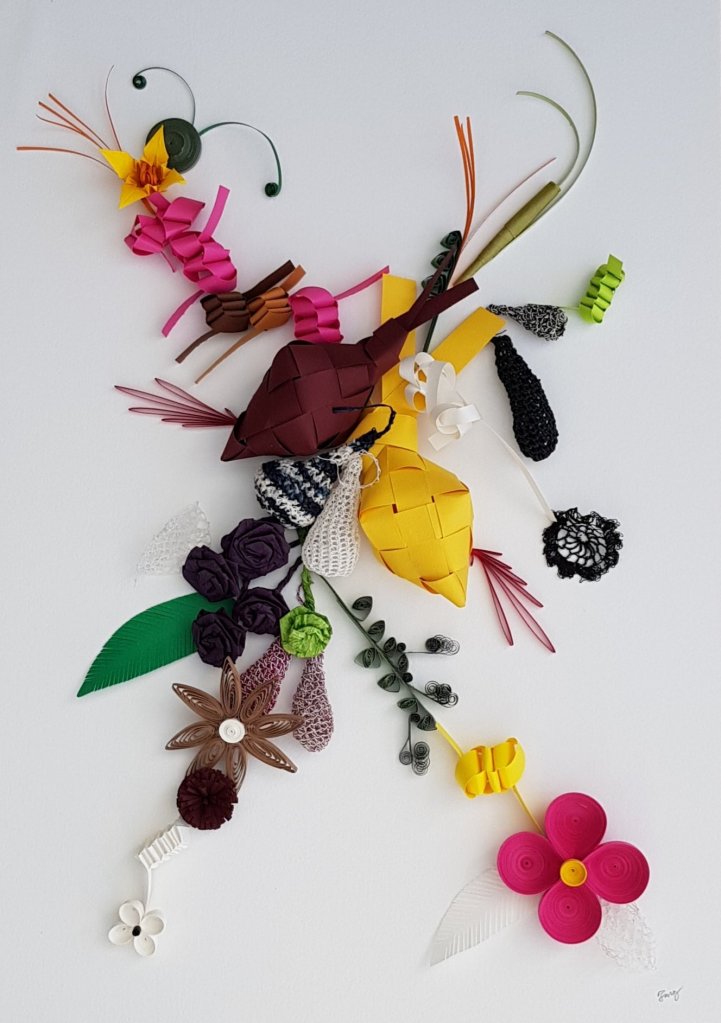 This piece was literally about an ordered kind of chaos, which Filipinos have in abundance, wherever you go in the Philippines. Fiestas are no exception, and I thought of re-creating this in paper.