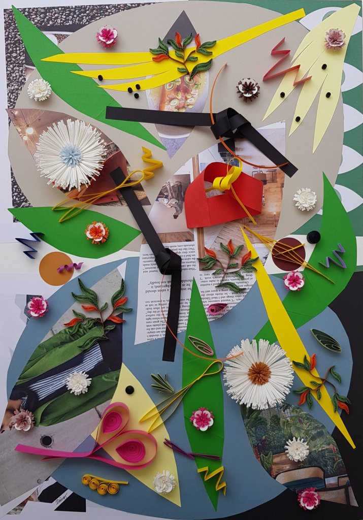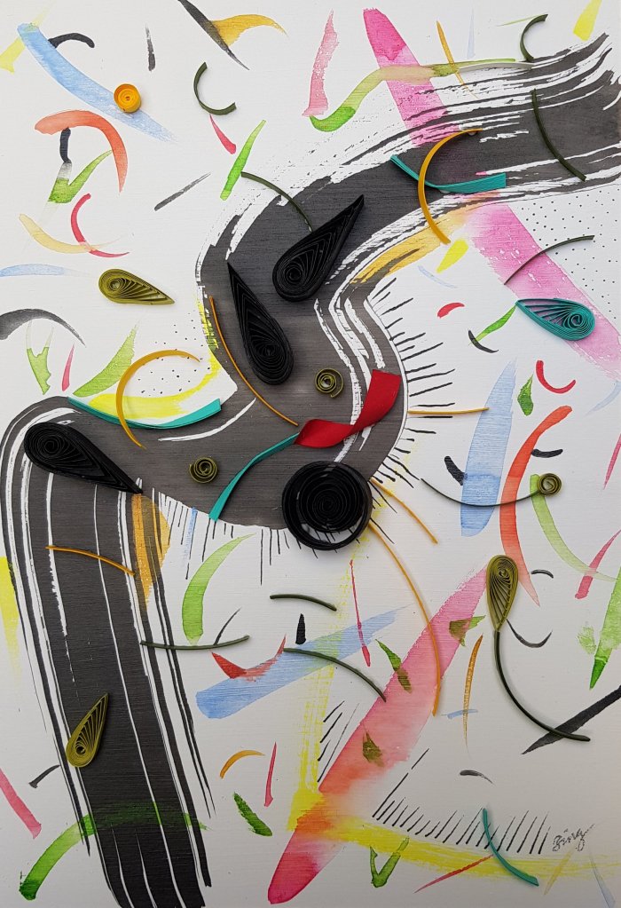 This had started with collage, with the dimensonal paper elements made from scratch. I like to choreograph them and just have fun creating dimensionality and colour clashes.